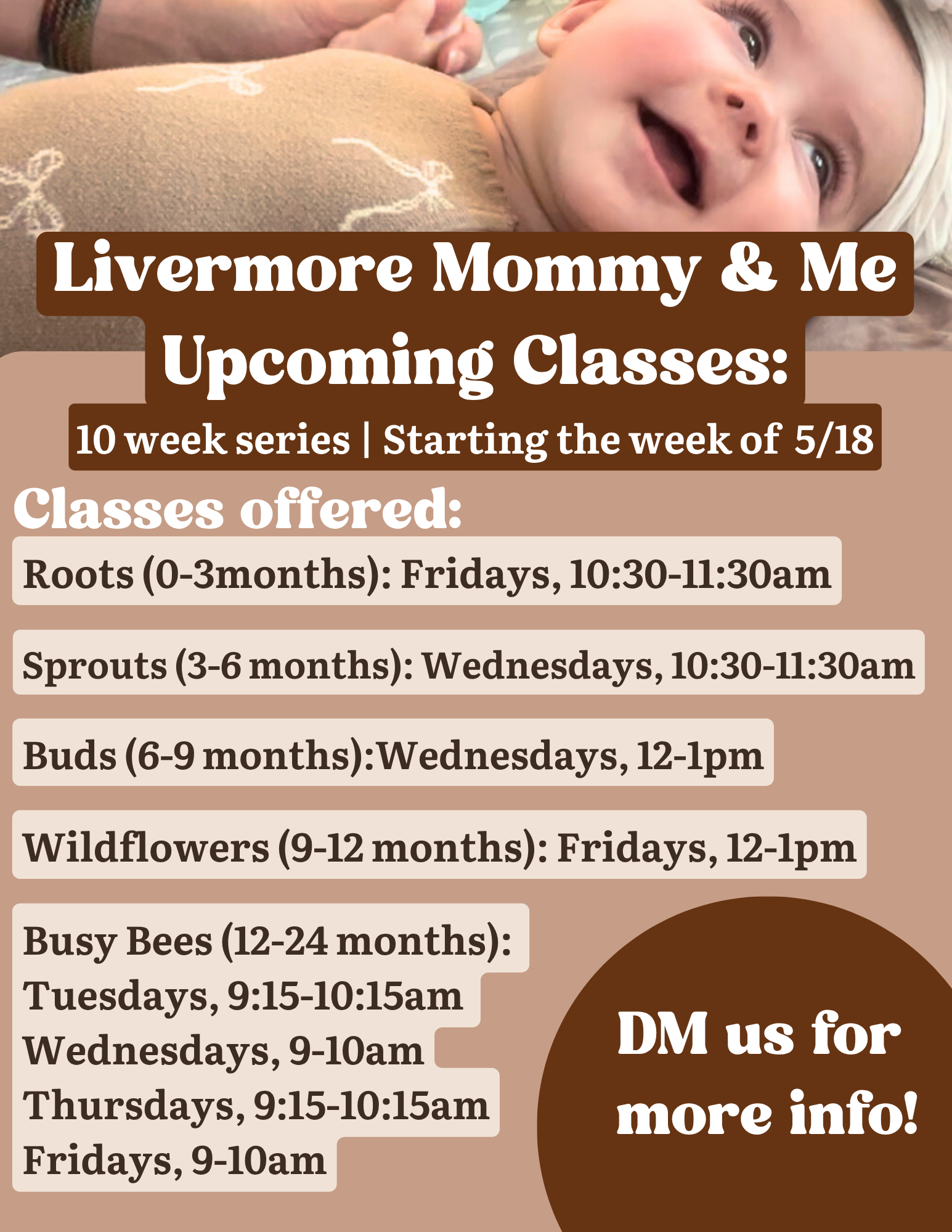 Registration for new moms will open on Wednesday April 22nd, at 12pm. Those on the Interest List will receive a link an early.